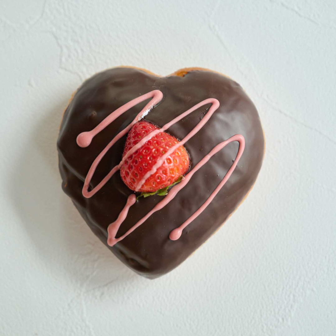 ハート型のブリオッシュにチョコクリームといちごを重ねた、チョコレートラバーズドーナツ。