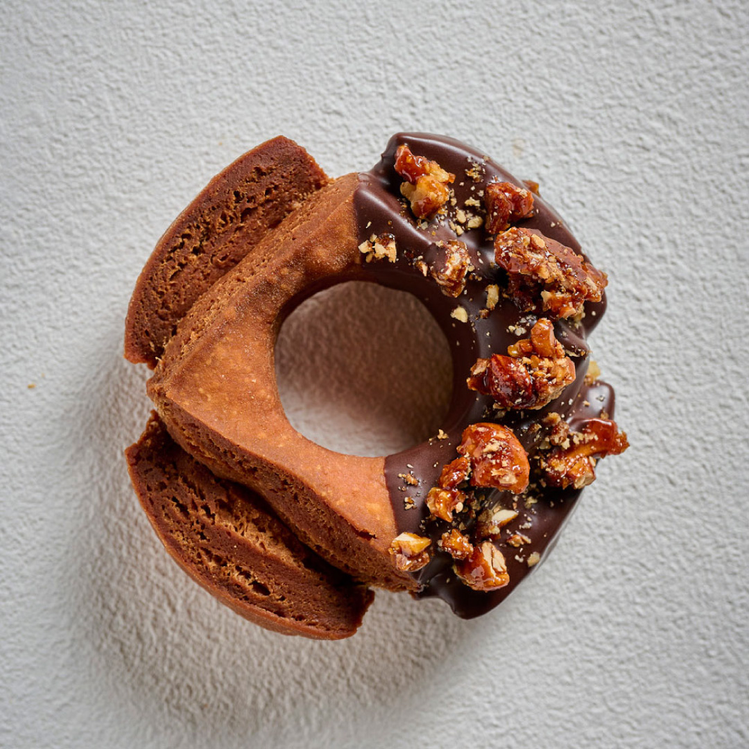 3種のナッツを香ばしくキャラメリゼし、塩をアクセントに仕上げました。ビターなチョコレートとサクサク食感のオールドファッション生地が好相性の一品です。